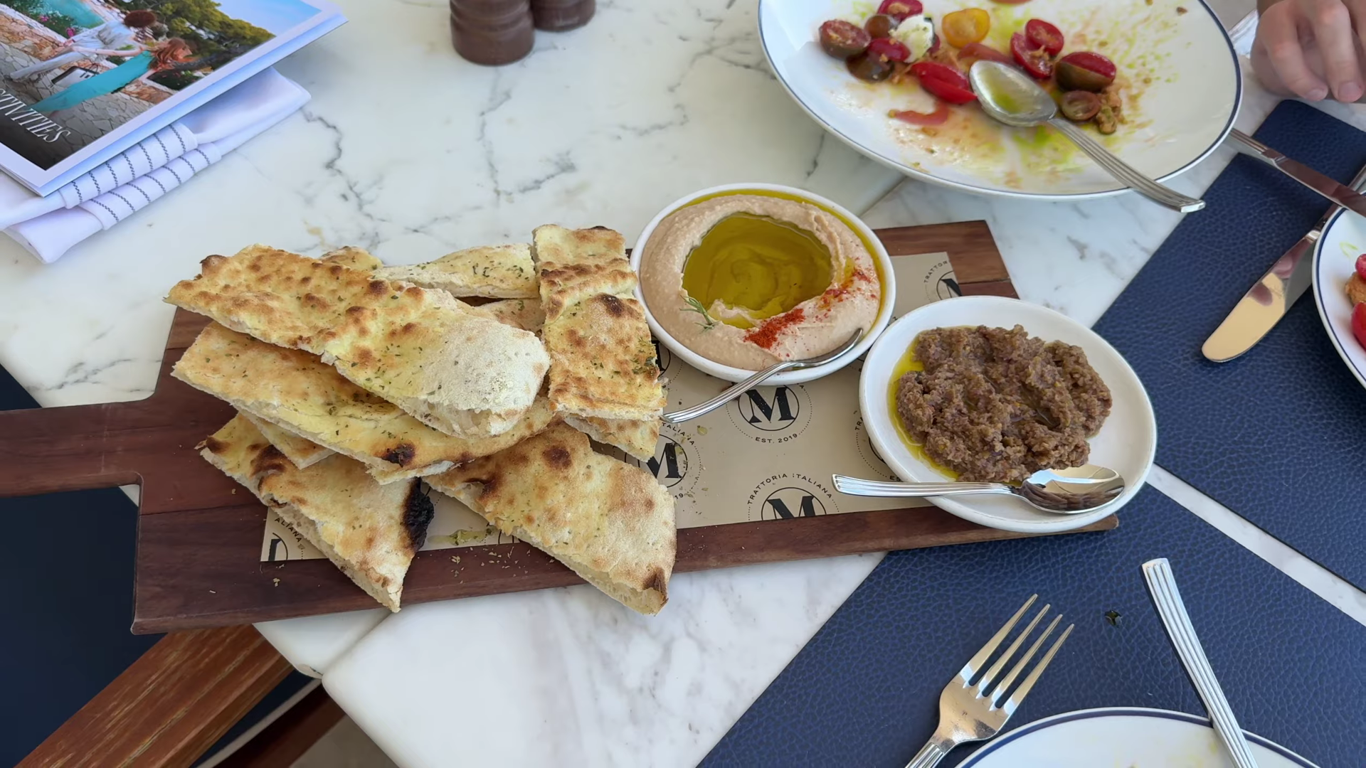 The standout meal of the stay, and one of the best restaurant experiences of the entire Greece trip. The vegan panzanella salad was exceptional, a 10 out of 10 dish that we would return to Athens specifically to eat. Focaccia with a generous serve of tapenade followed. Arrabiata served on a plate designed to look like the ocean with a touch of espresso. The final linguini was perfectly cooked.