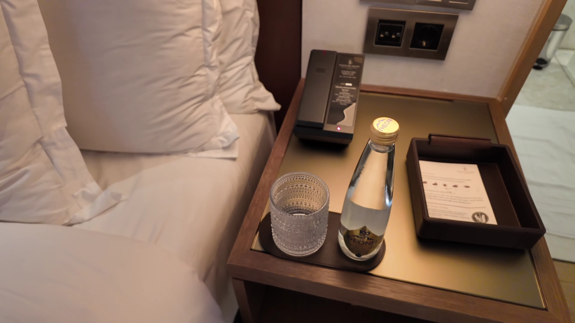 The iPad controls the room and handles dining orders, spa bookings, housekeeping requests, and express pressing. The hotel initially appeared to offer only chargeable spa products when we scanned the QR code in the bathroom, but the iPad revealed a full complimentary amenity list on request: dental kit, mouthwash, earplugs, eye mask, firm and plush mattress toppers, extra bathrobes, feminine products, sewing kit, shaving kit, cotton swabs, and more. Everything is available, but you do need to know to look for it through the iPad rather than expecting it to be laid out in the room.