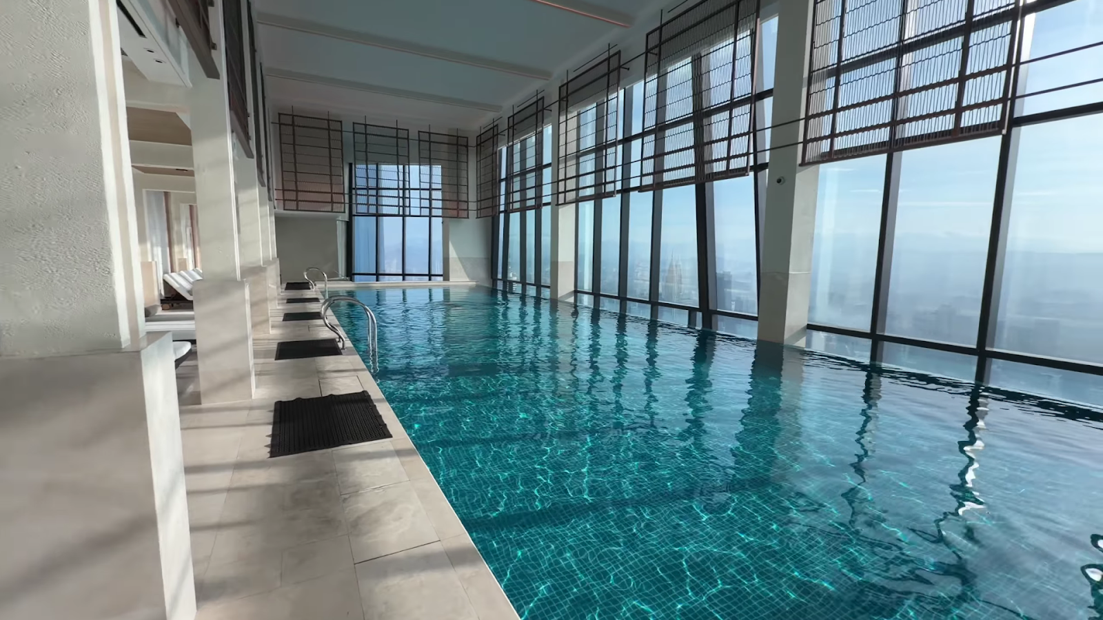 The Park Hyatt Kuala Lumpur features one of the best hotel spa experiences we have encountered. On the 99th floor, the spa includes a sauna with floor-to-ceiling windows, a hot tub, a hanging seat, seats along the full window line, and well-appointed changing rooms with Dyson hair dryers. The views from the sauna alone justify the visit.